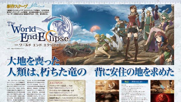 Jak ujawniono w ostatnim numerze magazynu Famitsu, Sega pracuje nad sieciowym RPG-iem o nazwie The World End Eclipse. Akcja toczyć się będzie w świecie zniszczonym przez wojnę smoków, w którym ludzie starają się budować swoją cywilizację.
