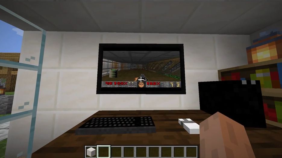 Na szczęście da się. Tym razem sesja w E1M1 została odpalona w "Minecrafcie". Ot w klockowym domku stał komputer, a na nim Windows 95 z zainstalowanym "Doomem". Akcja była możliwa dzięki modowi VM Computers, który umożliwia odpalenie wirtualnego systemu, gdy posiadamy obraz dysku z Windowsem.