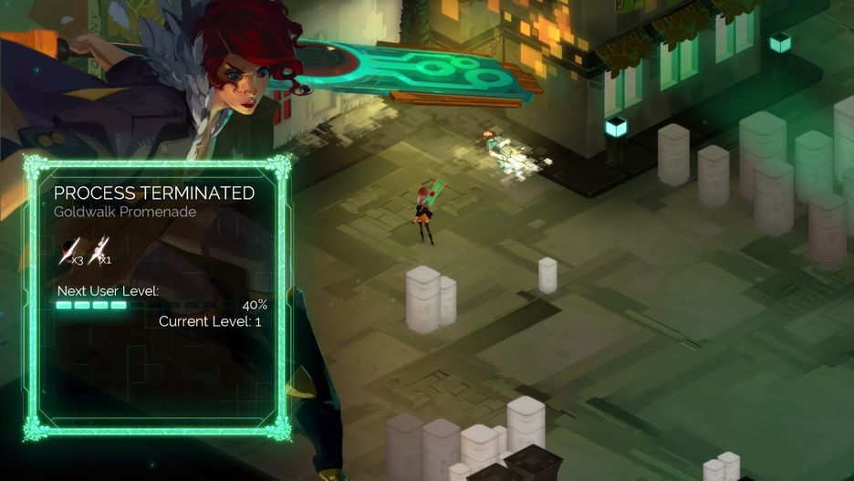 Podoba mi się animacja, gdy Red ciągnie Transistor za sobą - widać, że jest drobną śpiewaczką, a nie waleczną heroiną z mieczem