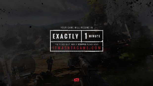 O 17:00 stanie się coś jeszcze - zatrzyma się gra Enemy Front, strzelanina z czasów drugiej wojny. Gracz wciela się w niej w Roberta Hawkinsa - amerykańskiego korespondenta wojennego polskiego pochodzenia. Rzucany po froncie trafia też do Warszawy i bierze udział w części wydarzeń powstania. Przez minutę gracze na całym świecie będą podziwiać następujący komunikat w różnych językach kierujący na stronę itwasntagame.com: