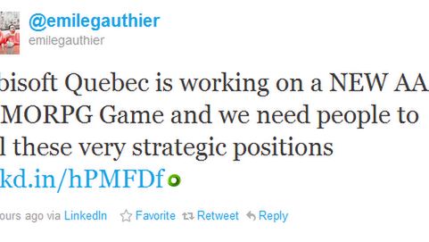 To, że kanadyjski oddział Ubisoftu pracuje nad MMO jest pewne - Emile Gauthier na Twitterze ogłosił nabór do pracy nad nowym tytułem MMORPG. Jeśli zaś zerkniemy na podlinkowane oferty pracy na Facebooku Ubisoft Quebec, zobaczymy, że dotyczą one programistów na Wii U do nowego tytułu AAA.