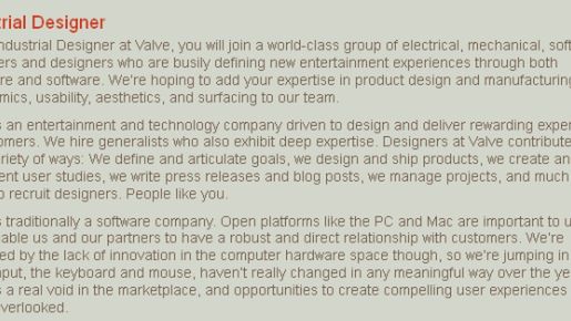 Dlatego szuka odpowiednich ludzi na stanowisko "industrial designer".