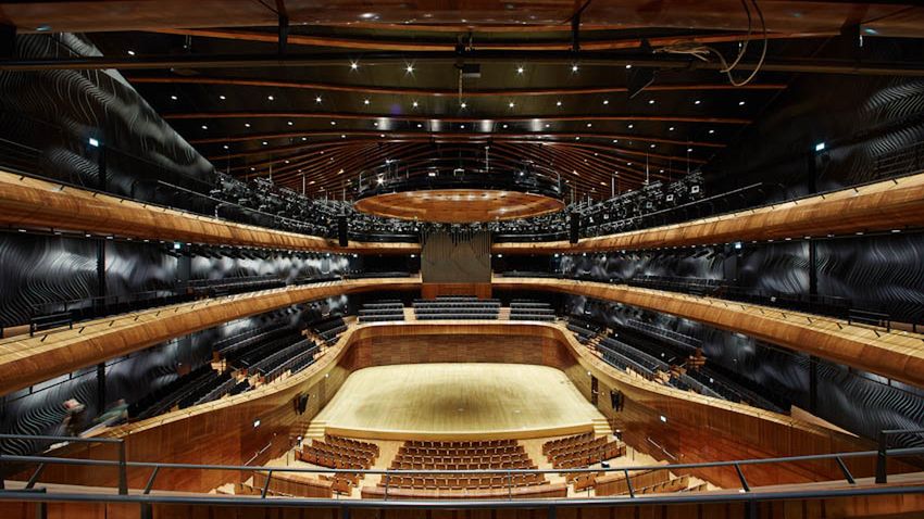 To, czym koncert w Katowicach dodatkowo wyróżniał się na tle jego poprzedników, był bez wątpienia obiekt, w którym się odbywał - cudowna siedziba Narodowej Orkiestry Symfonicznej Polskiego Radia, zachwycająca bryłą i akustyką cały świat. Jako katowiczanin zdążyłem już przywyknąć do oglądania NOSPR-u, ale nie miałem szansy uczestniczenia w żadnym koncercie. Wystrój uważam za fantastyczny, przejrzystość dźwięku również, choć jego natężenie mi podpadło - było nieco za cicho. Z prawej strony antresoli, gdzie siedziałem, dźwięk dochodził też nieco nierówno (wina ustawienia głośników nad sceną).