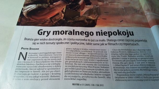 W najnowszej Polityce. Jako przykłady Max Payne 3, Spec Ops: The Line, Mass Effect i The Kite.