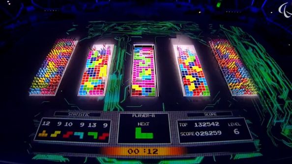 W czerwcu Tetris będzie obchodził swoje 30 urodziny. To z pewnością jedna z najłatwiej rozpoznawalnych gier. Znana i lubiana na całym świecie. Dziwne, że organizatorzy nie chcieli pochwalić się nią na tej bardziej prestiżowej i obecnej w mediach imprezie. Zwłaszcza, że na ceremonii zamknięcia paraolimpiady Tetris wypadł świetnie. Zobaczcie poniższy skrót: