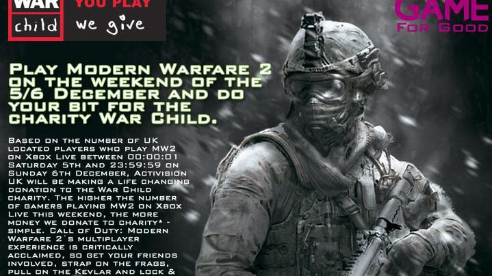Jeśli macie w domu Modern Warfare 2 na Xboksa 360, a na nim konto zarejestrowane na Wielką Brytanię, to w trakcie zbliżającego się weekendu możecie pomóc zbierać pieniądze na międzynarodową akcję War Child, która zajmuje się pomocą dzieciom, poszkodowanym przez wojnę.