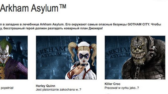 Trochę szkoda, że po wejściu na polską wersję konkursu dostajemy informacje po rosyjsku (cytując: Темный рыцарь попал в западню в лечебнице Arkham Asylum. Его окружают самые опасные безумцы GOTHAM CITY. Чтобы вырваться на свободу, бесстрашный герой должен разгадать коварный план Джокера!), na szczęście same pytania są już w naszym rodzimym języku.