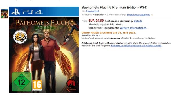 Niemiecki Amazon umożliwia zakup gry czym uprzedził chyba oficjalną zapowiedź. Wiedzieliście, że u naszych zachodnich sąsiadów ta seria znana jest jako Baphomets Fluch? Człowiek uczy się całe życie.