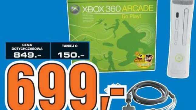 Przeglądając aktualne gazetki promocyjne elektromarketów, znajdziemy promocję w gdańskim Saturnie na Xboksa 360 Arcade, który został przeceniony z 849 zł na 699 zł. Ten sam market w najnowszej gazetce poleca również DualShocka Sony w cenie 79,90 zł, czyli o 20 zł mniej niż cena katalogowa.