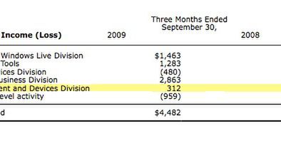Pomimo tego, że raport ukazujący finanse Microsoftu za pierwszy kwartał roku finansowego może nie być powodem do świętowania w firmie (spadek dochodów o 14% oraz o 18% wpływów netto w stosunku do analogicznego okresu roku ubiegłego), to dział Entertainment & Devices radzi sobie znakomicie. Głównie dzięki obniżeniu kosztów wytwarzania Xboksa 360, choć należy pamiętać, że ta gałąź firmy odpowiedzialna jest także za Games for Windows i Zune, to jednak konsole stanowią lwią część jej dochodu.
