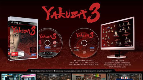 Co znajdziemy w pudełku poza samą grą? Soundtrack na osobnym CD (31 piosenek), oraz cztery dodatki wydane w Japonii. Będzie również płyta CD do PC, na której znajdziemy wyjaśnienie historii jaka toczy się w serii Yakuza. Premiera 12 marca. Brawo Sega.