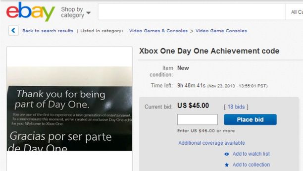 Kupujący Xboksa w dniu premiery zdobywają szczególne osiągnięcie - i to jeszcze zanim włączą jakąkolwiek grę. Jest to osiągnięcie, które leży sobie na kartce w pudełku z nowym Xboksem, a dokładniej z jego limitowanym modelem "Day One", który dostają tylko Ci, którzy zamówili przed premierą. A inni? Mogą kupić kartkę z kodem na osiągnięcie na Ebayu i potem szpanować, że przeżyli premierę Xboksa One. Wystarczy ok. 40 dolarów. Można też kupić z całym Xboksem.
