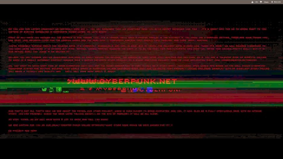 Czym byłby cyberpunk bez spisków i tajemnic. W zwiastunie - ok. 2:14 - jest ukryta wiadomość, widoczna powyżej (a tu większa wersja). Ale nie wypalajcie sobie oczu, czytając niewyraźny tekst - ktoś uczynny już go przepisał: